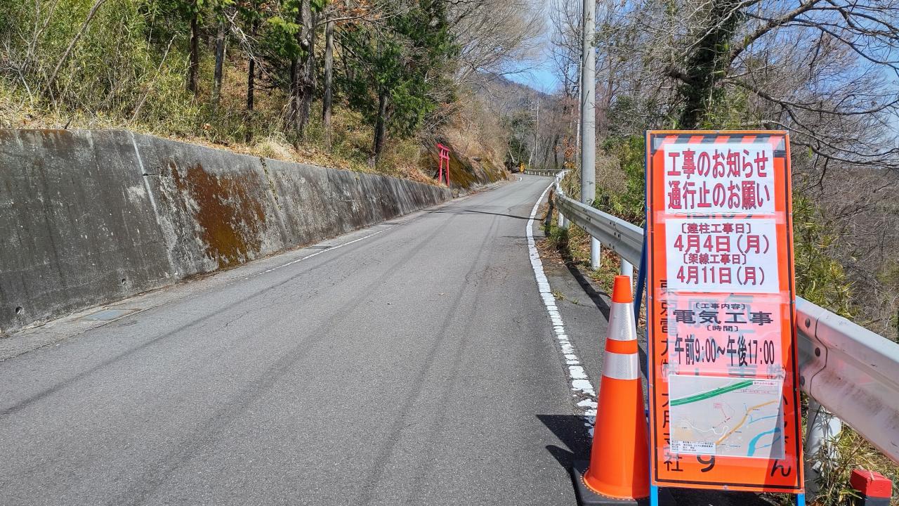 4/4(月)~11(月)の一週間、中学校の分岐点から中央道の高架下まで、通行止めになります(写真)。上野原ICからお越しのお客様はローソン手前のウェルネスパーク入口の信号を右に登り中央道側道からお越しください。大月ICからお越しのお客様は猿橋駅先のコインランドリーを左折し宮下橋、百蔵橋を渡り大月市総合グラウンド入口に入り、すぐ右折して中央道側道からお越しください。談合坂スマートICからは問題なく来れますが、もし迷いましたらお電話を頂ければ誘導致します。